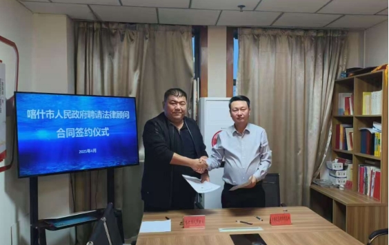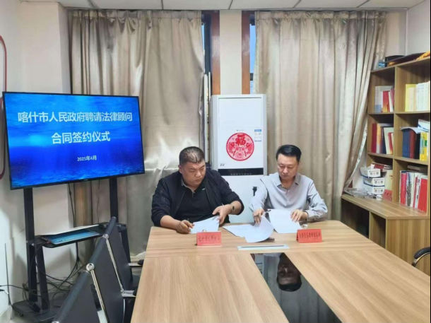2025年4月22日,喀什市司法局局长杜昆代表市政府与新疆正嘉律师事务所胡志翔主任在喀什市司法局签署了《喀什市人民政府聘请法律顾问合同》,继续聘请新疆正嘉律师事务所担任喀什市人民政府法律顾问。